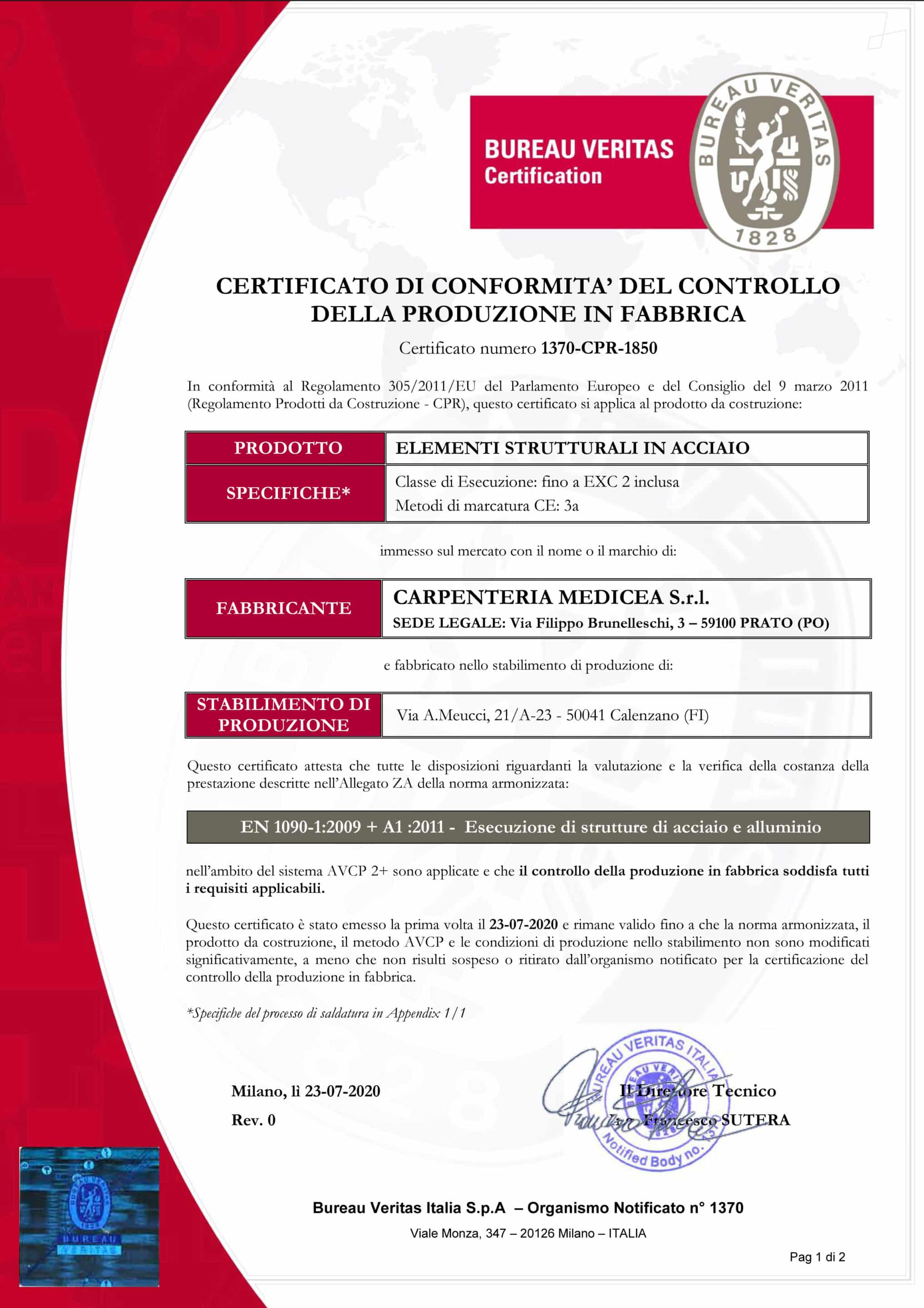 carpenteria media certificato di conformità
